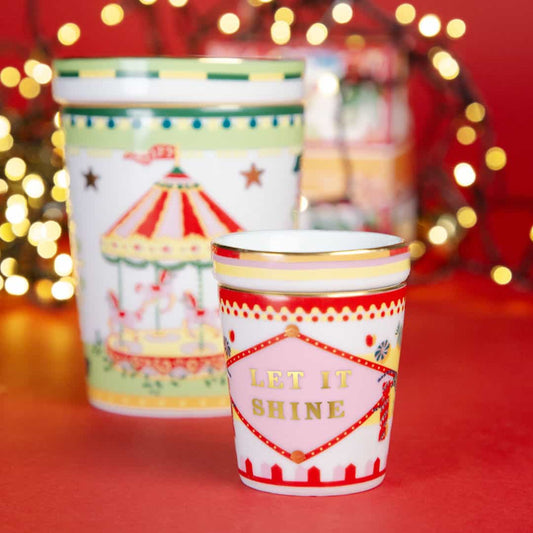 Bicchiere con Piattino/Coperchio Rosso in Porcellana - Mamma Mia Xmas