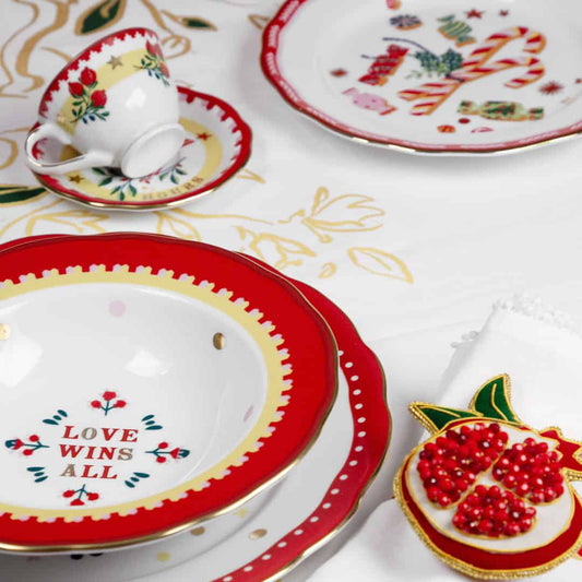 Piatto Fondo Rosso Porcellana - Mamma Mia Xmas