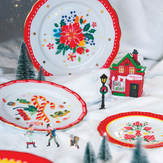 Piatto Frutta Rosso Porcellana - Mamma Mia Xmas