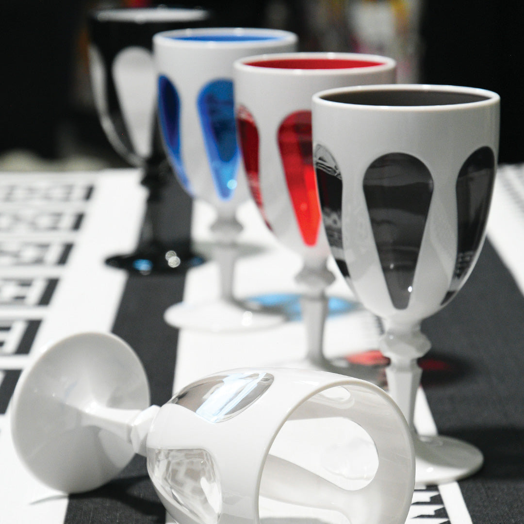 Set of 6 acrylic wine glasses from the delicate Aqua collection. The perfect classic lines find space and expression in objects capable of combining the seduction of a refined design with the harmony of a functional material such as acrylic.