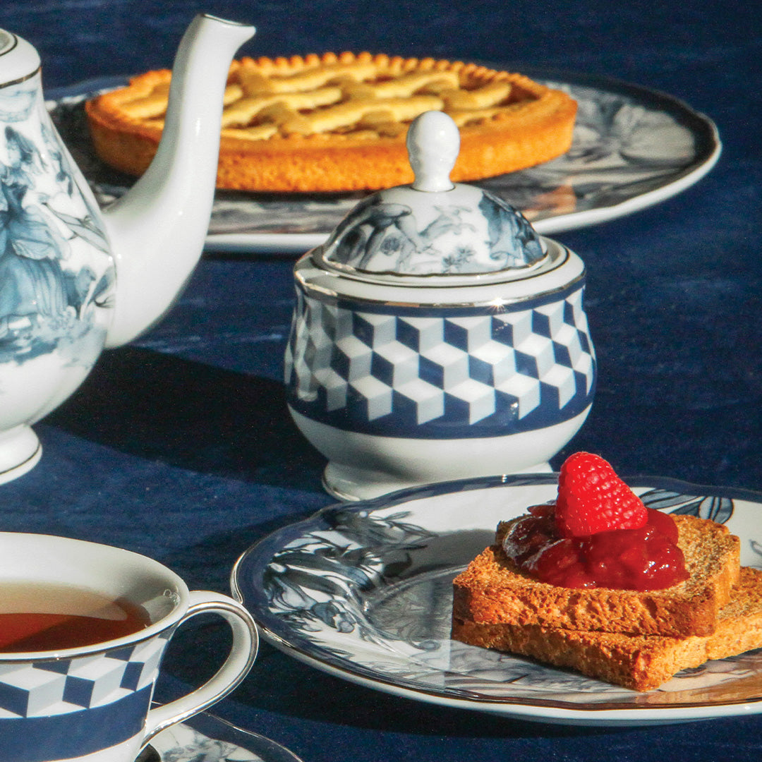 Porcelain sugar bowl from the elegant Versailles collection. The classic toile de jouy design of the Versailles collection evokes a world of joy, romance and adventure.