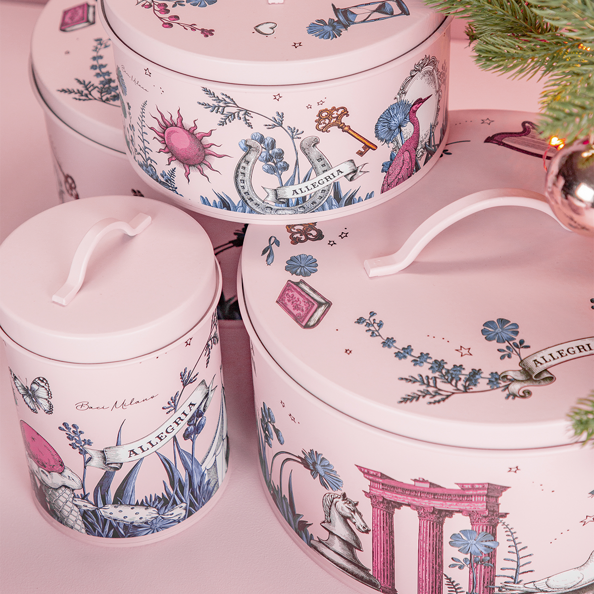 Nella nuova collezione Allegria, queste qualità si fondono in una perfetta sinergia: il design raffinato delle scatole in metallo incontra l’eccellenza del cibo italiano, autentica espressione di tradizione e qualità.